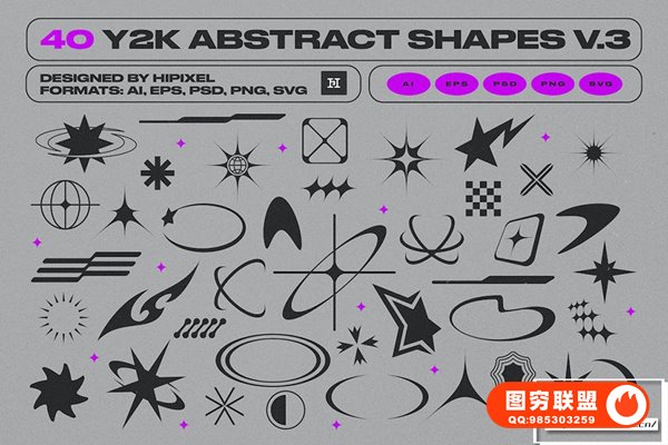图穷联 » [矢量素材]40款复古赛博朋克Y2K抽象科幻宇宙元素几何图形矢量素材 Y2K Abs