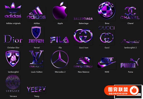 徽标包括:迪奥、阿迪达斯、路易威登、苹果、宝马、香奈儿、法拉利、古驰、兰博基尼、奔驰、新百伦、耐克等。使用 MoonBear 的 20 个自定义 Chrome 设计师徽标包为您的项目增添一些闪亮的光彩。
