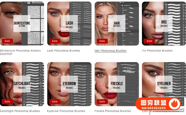 图穷联 » [PS笔刷]250+人像修饰美容化妆毛发虹膜睫毛眼线雀斑PS笔刷皮肤质地PS动作合集