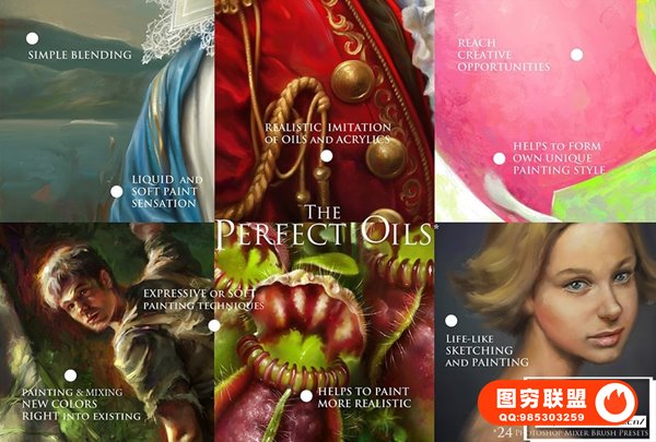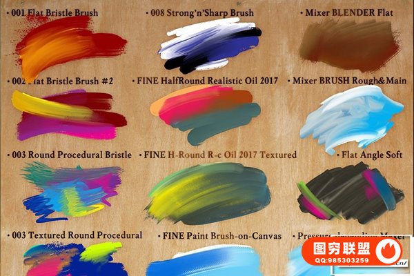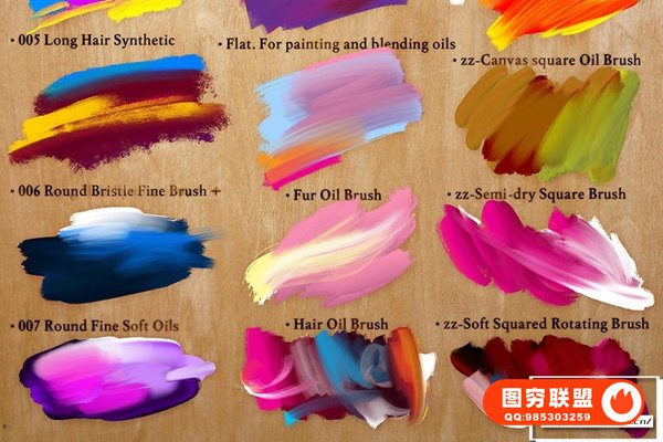图穷联 » [PS笔刷]24支油画绘画颜料笔触肌理Photoshop笔刷 Perfect Oil