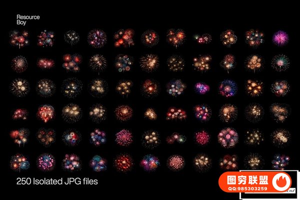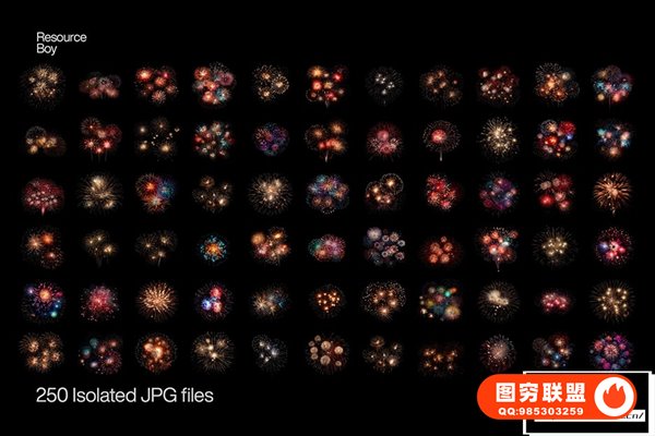 [图片素材]250张绚丽烟花升空爆炸节日焰火创意设计图片素材 250 Fireworks Textures