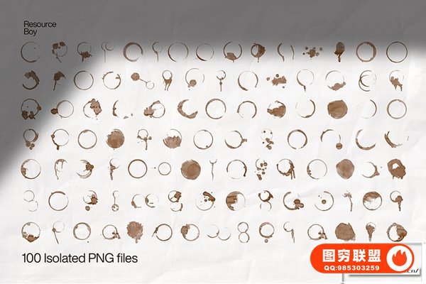 图穷联 » [PNG素材]100张咖啡杯印痕污渍洒落污损纹理PNG图片素材 100 Coffee