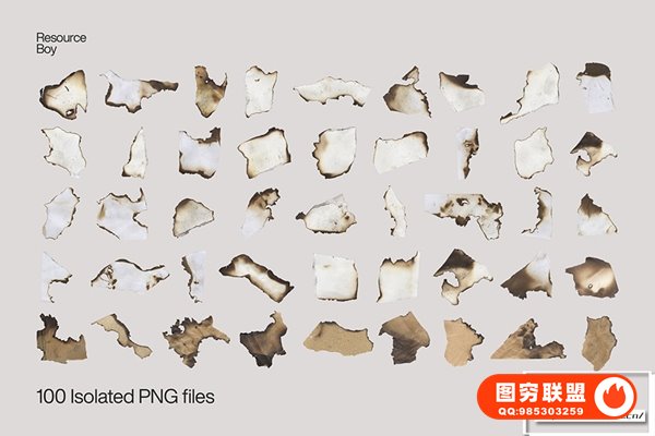 图穷联 » [PNG素材]100张燃烧纸片边缘烧焦纹理艺术设计PNG素材 100 Burnt E