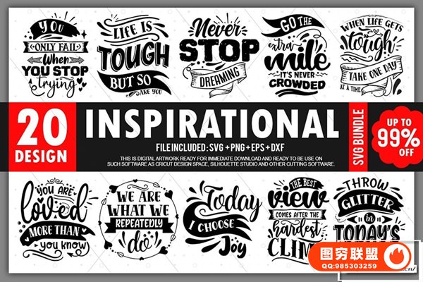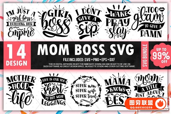您可以将他们广泛应用于T恤设计,鼠标垫,咖啡杯/马克杯,海报,贴纸,磁铁,按钮,乙烯基贴花,剪贴簿,标志等很多场景。请确保您有适当的软件来打开和剪切文件。这些设计最适合 Silhouette Cameo、Cricut、Sure Cuts A Lot 和Scan N Cut cutting machines等。