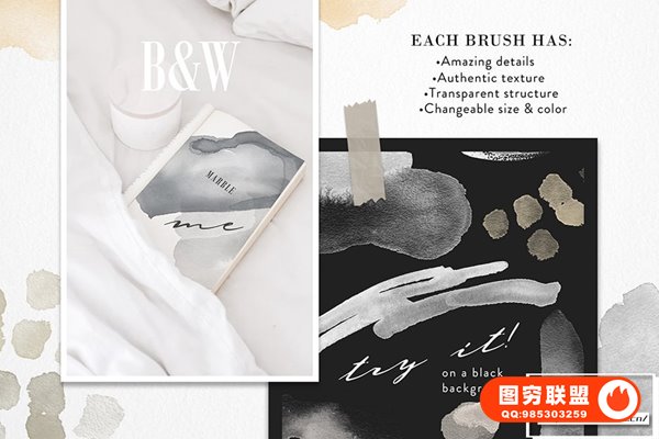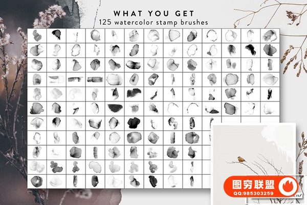 该合集包仅包含以下产品的画笔集文件(不包含 Photoshop 画笔、样式和 PNG 文件!!!):