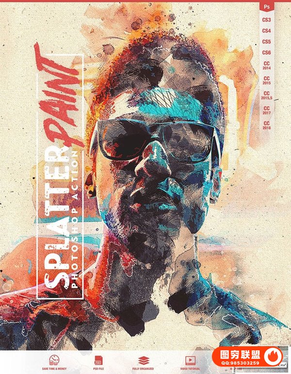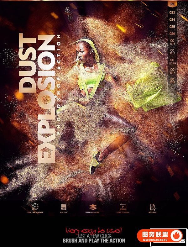 图穷联 » [PS动作]20套粒子火焰背景爆炸玻璃炸裂故障复古垃圾水彩飞溅混合特效PS动作合集