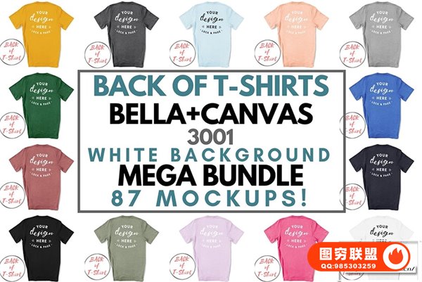 BELLA CANVAS 3001 – T 恤背面超大套装