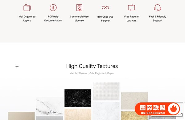 高品质纹理:大理石、胶合板、定向刨花板、钉板、混凝土、纸张。
