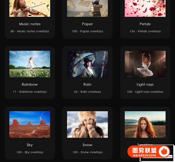 包含的类别:气球、黑色羽毛、散景、气泡、五彩纸屑、灰尘、白色羽毛、萤火虫、镜头光晕、烟花、多雾路段、树叶、灯笼、泄漏、信件、音符、纸、花瓣、彩虹、雨、太阳光线、天空、雪、阳光