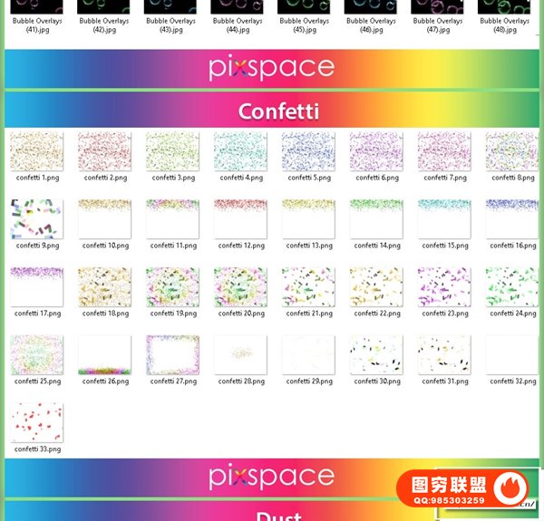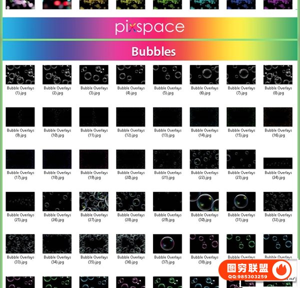[图片素材]2000+气球羽毛散景光斑彩屑气泡花瓣枝叶雨雪阳光彩虹照片创意叠加合成素材 Pix-Space +2000 Overlays