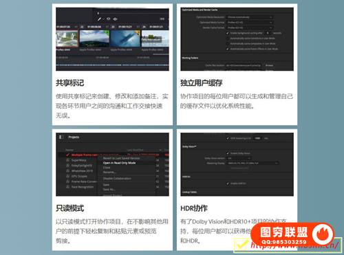 DaVinci Resolve Studio搭载通用时间线功能,采用强大的数据库设计、媒体夹和片段锁定、内置聊天、时间线对比工具以及更多功能,是一款可让不同工作人员同时对同一个项目进行操作的后期制作解决方案!