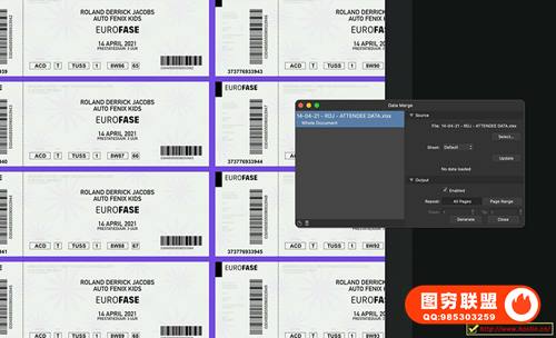 通过合并来自外部数据源(目前支持文本/CSV、JSON 和 Excel 文件),轻松将文本和图像链接整合到您的文档中,非常适合用来设计证书、名片、徽章、票据、套印信件、信封和产品目录。