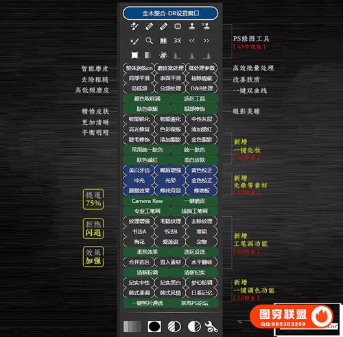 [PS插件]全新DR5.0全功能磨皮美妆工笔画插件PS集成面板