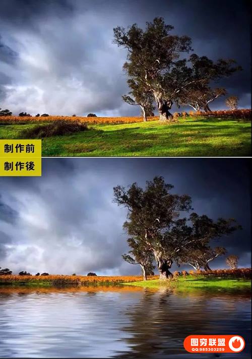 图穷联 » PS水波倒影插件 Flaming Pear Flood 一键水波倒影效果 支持Win/Mac