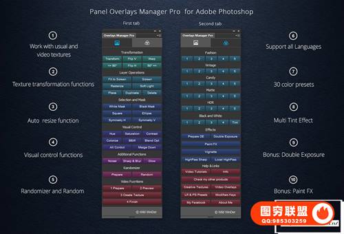 面板支持所有语言,可用于 Adobe Photoshop CC2015+、CC2017、CC2018 和以上