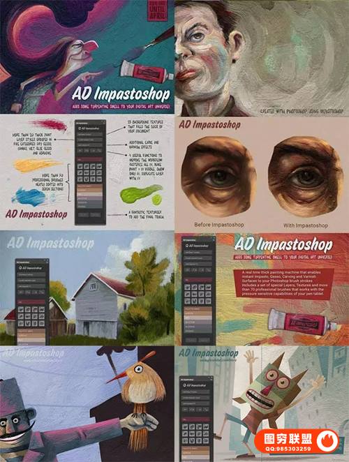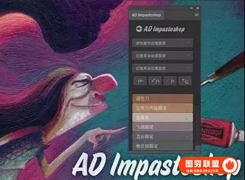 AD Impastoshop是一款可以实现各种手绘涂料效果的ps扩展面板