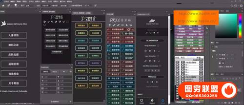 还集成了扩展面板,包括Beauty Retouch 3 ,中性灰磨皮,Coolorus 2.6 色环面板,Blendit 终极修图辅助面板,Double USM2 USM双锐化,美颜润肤等等,可以大幅度提高修图师的工作效率!