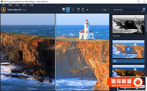 Topaz Adjust AI v1.0.6 人工智能软件是一个强大的HDR渲染软件。无论是控制曝光,还是改善细节到增强色彩,Topaz Adjust AI都能完美实现。它支持颜色、阴影、细节等方面的调整,使照片生动。此外,它还提供多种功能,如自动降噪、自动消除光晕、图像阴影调整、图像高亮调整等。并且支持许多不同类型的原始文件类型,如DNG和相机特定的文件。