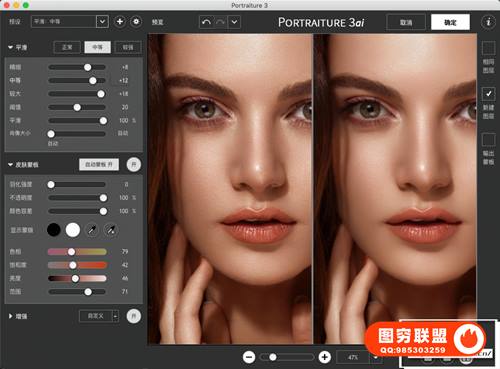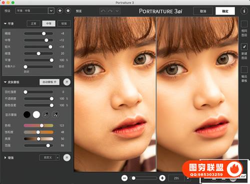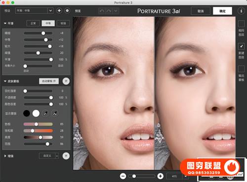 图穷联 » PS磨皮美肤调色影楼自动批量磨皮滤镜中文插件 Imagenomic Portraiture v3.5.4 Mac中文版