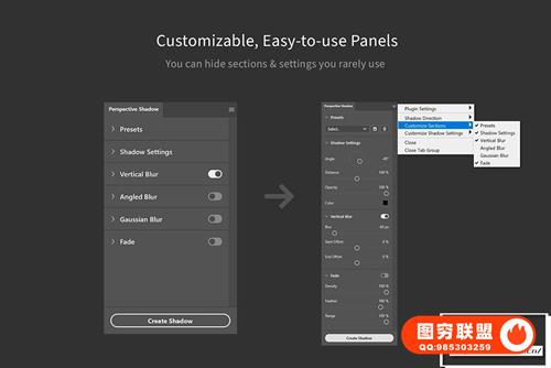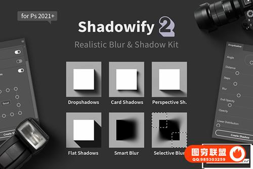 图穷联 » 真实模拟阴影投影效果PS扩展插件 Shadowify 2 -Blur - Shadow Plugin Win/Mac 汉化中文版