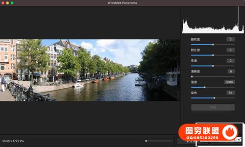 进一步编辑具有不同参数的全景图,例如饱和度、对比度、亮度、温度、色调等。它应该是最简单和最强大的全景创建者,只需点击几下即可以出色的效果拼接照片。