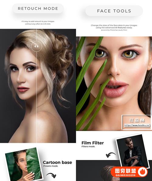 图穷联 » 高级人像修饰面部美容表情特效卡通漫画调色滤镜PS插件 Photo Lab V1.0.1