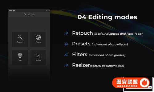 Photo Lab 提供多种工具作为模式,您现在将获得 4 种模式,并且您将在即将到来的更新中获得更多模式。