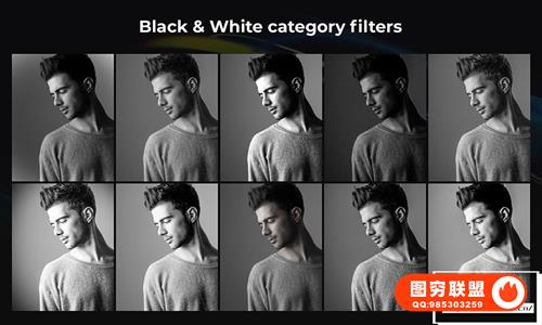 照片滤镜:为您的图像添加专业的颜色等级(06 个类别中的 60 多个滤镜)。