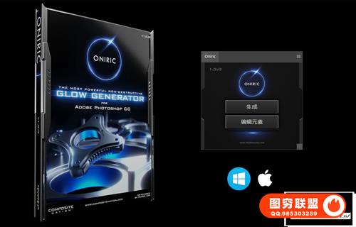[PS插件]强大的无损眩光可自定义区域发光辉光插件Oniric Glow Generator 1.3.0 中文汉化版 支持Win/Mac