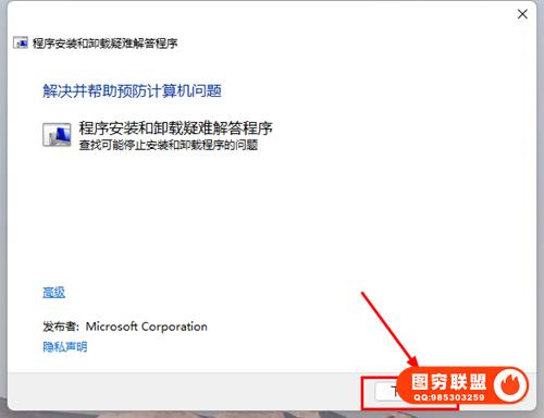 1,双击“MicrosoftProgram_Install_and_Uninstall.meta.diagcab(Windows故障排除工具)”运行程序。点下一页;然后点击卸载。
