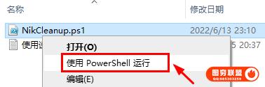 4、为确保软件残留清理干净,还需使用Nik Collection 专用清理工具清理冗余数据。右键单击NikCleanup.ps1,选择“使用 PowerShell 运行”
