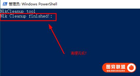 5、此时出现PowerShell 脚本运行窗口。无需任何操作,等待片刻,桌面会生成NikCleanup (log)日志文件和NikCleanupBackup_*(包含已删除的 Nik 文件/文件夹备份),PowerShell窗口出现“Nik Cleanup finished!”,说明清理已完成!