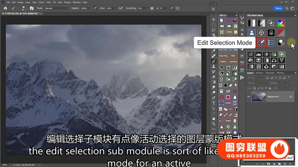 将活动选区编辑为蒙版– 轻松将活动选区转换为蒙版,对其进行修改,然后继续将其用作选区。