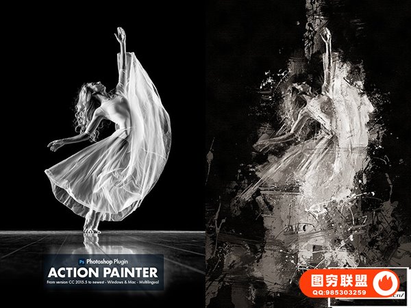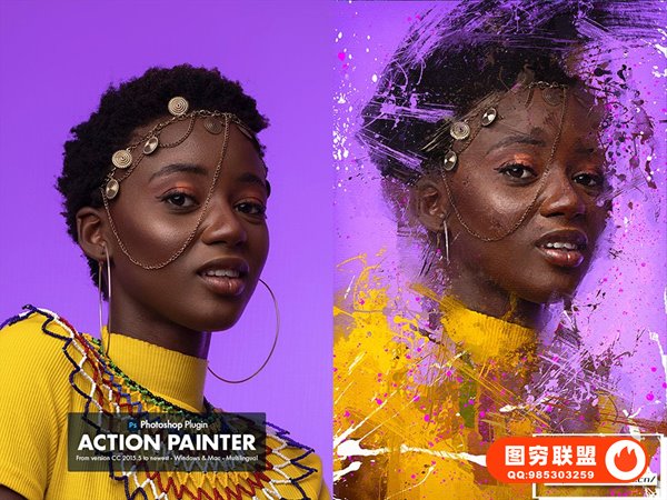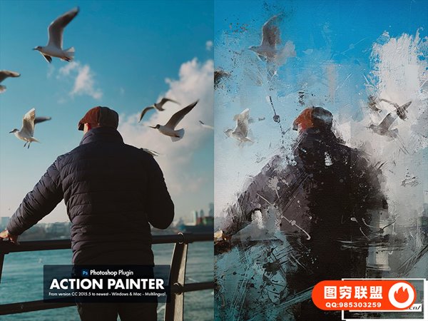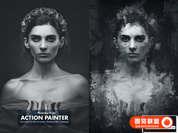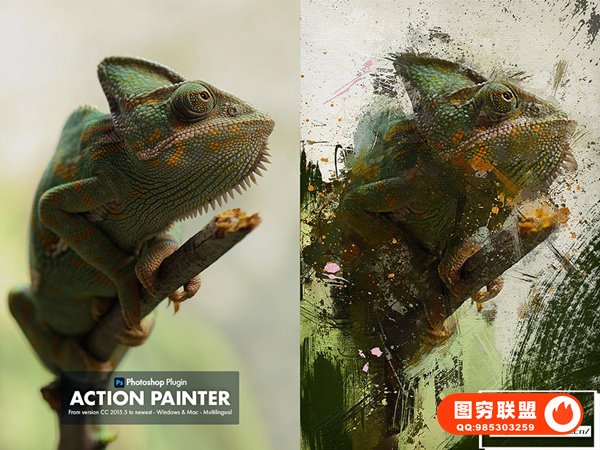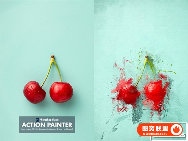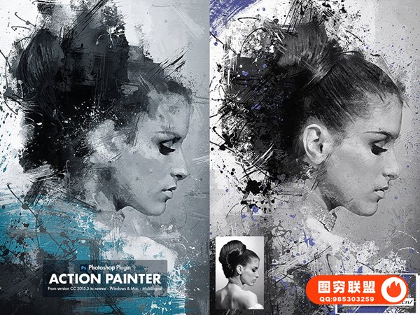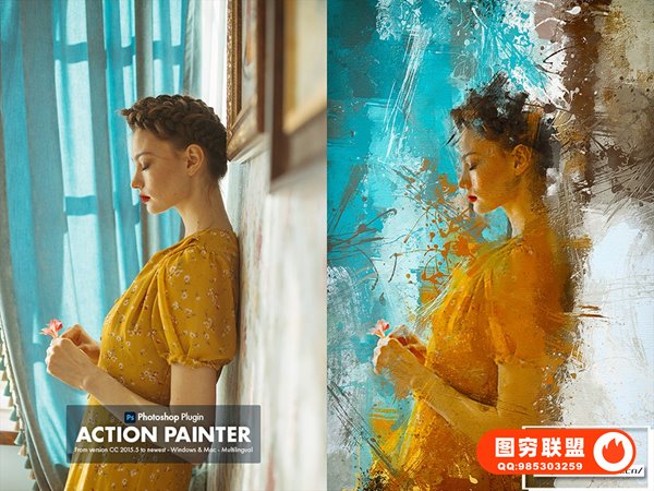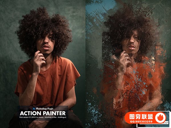 图穷联 » 手绘艺术油画厚涂水彩画效果生成特效PS插件 Action Painter v1.0 汉化版