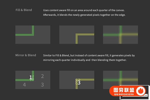 使纹理无缝的两种方法(向内旋转边缘或通过镜像画布)